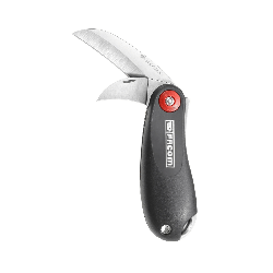 Le couteau Toukan® de Facom est un outil professionnel conçu pour la performance et la durabilité. Il dispose de deux lames spécifiques pour répondre à tous les besoins sur le chantier : une lame droite de 65 mm pour les découpes générales et une lame courbée de 35 mm (type serpette) idéale pour dénuder les câbles avec précision sans endommager les conducteurs. Son système de cran d'arrêt garantit une sécurité maximale en empêchant la fermeture accidentelle de la lame pendant l'effort.