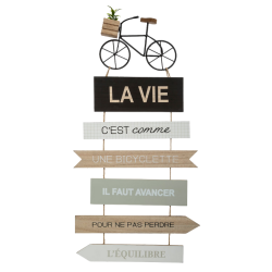 La déco murale "Youry" Atmosphera, au format 28x60 cm, apporte une touche chaleureuse et inspirante à votre intérieur. Avec sa structure en bois, ses panneaux décoratifs et son vélo en métal, elle diffuse un message positif qui s’intègre parfaitement dans un salon, une entrée ou une chambre.