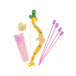 Le carquois rose, décoré de motifs floraux et du symbole emblématique de Raiponce, dispose d’une bandoulière réglable pour un port facile et confortable. Il permet de ranger les flèches et de les garder toujours à portée de main, pour que l’enfant puisse s’amuser partout.