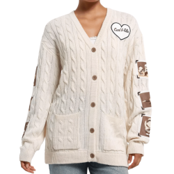 Gilet en maille torsadée Photographies Là-Haut Disney Pixar avec motifs de Carl, Ellie et la maison volante, un vêtement doux et confortable inspiré du film d’animation.