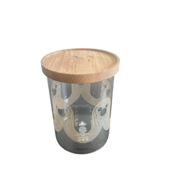 Pot Mickey Haven en verre fumé avec couvercle en bois gravé Mickey, parfait pour le rangement et la décoration.